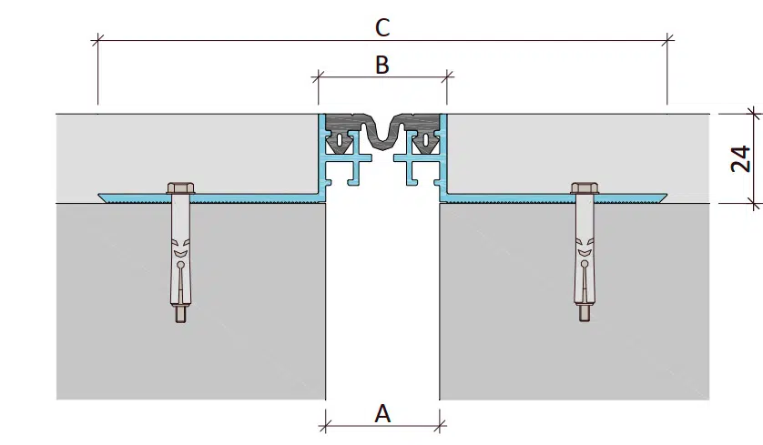 Дилатационное устройство АКВАСТОП ДШО-24-УГЛ/040 — это закладной деформационный шов длиной 3 метра. Данное устройство подходит как для внутренних помещений, так и для открытых площадок. предназначены для угловых соединений (стена-пол, стена-потолок) в ответственных конструкциях.. Снижают нагрузки, вызванные усадкой, температурными перепадами. Выдерживает нагрузку легкового транспорта.