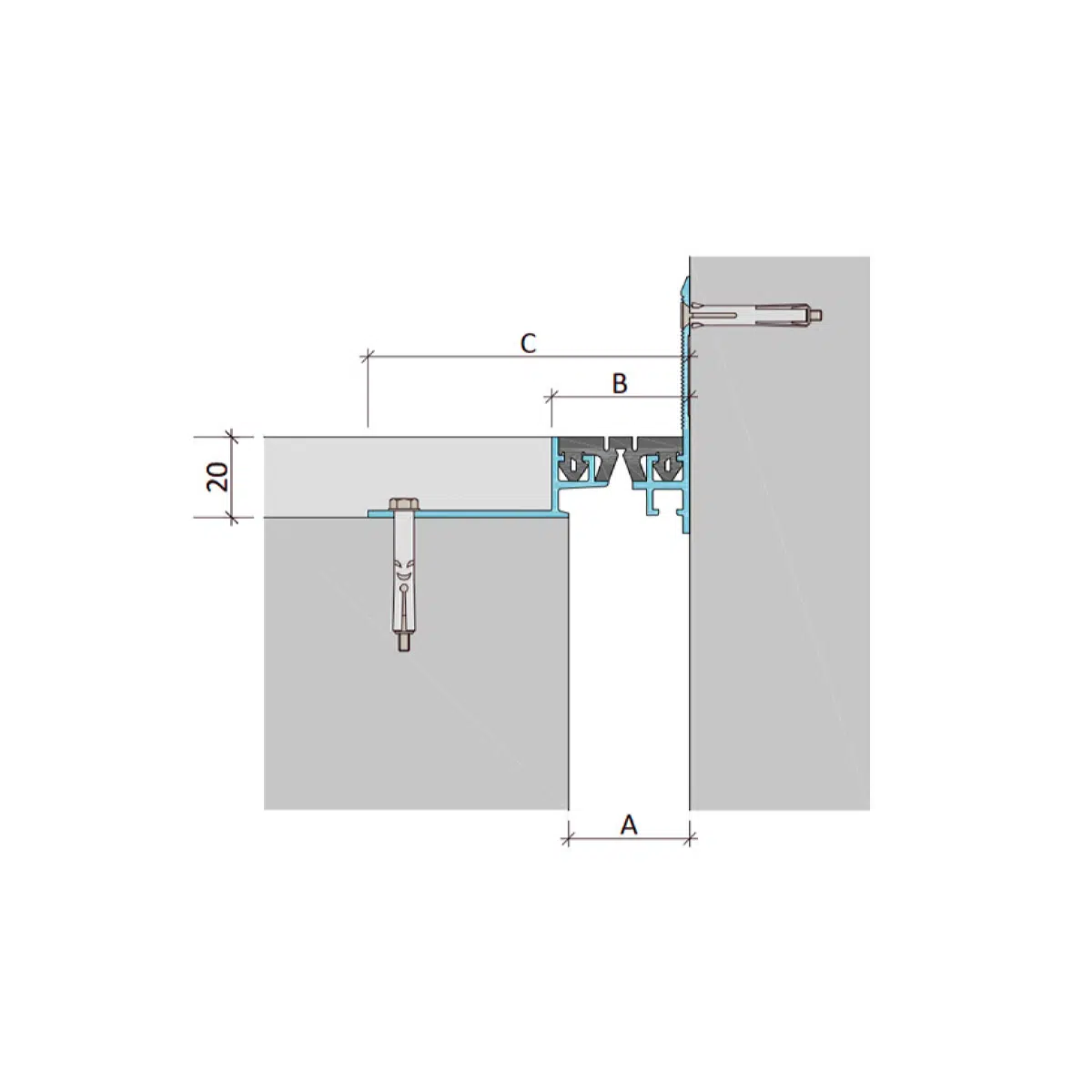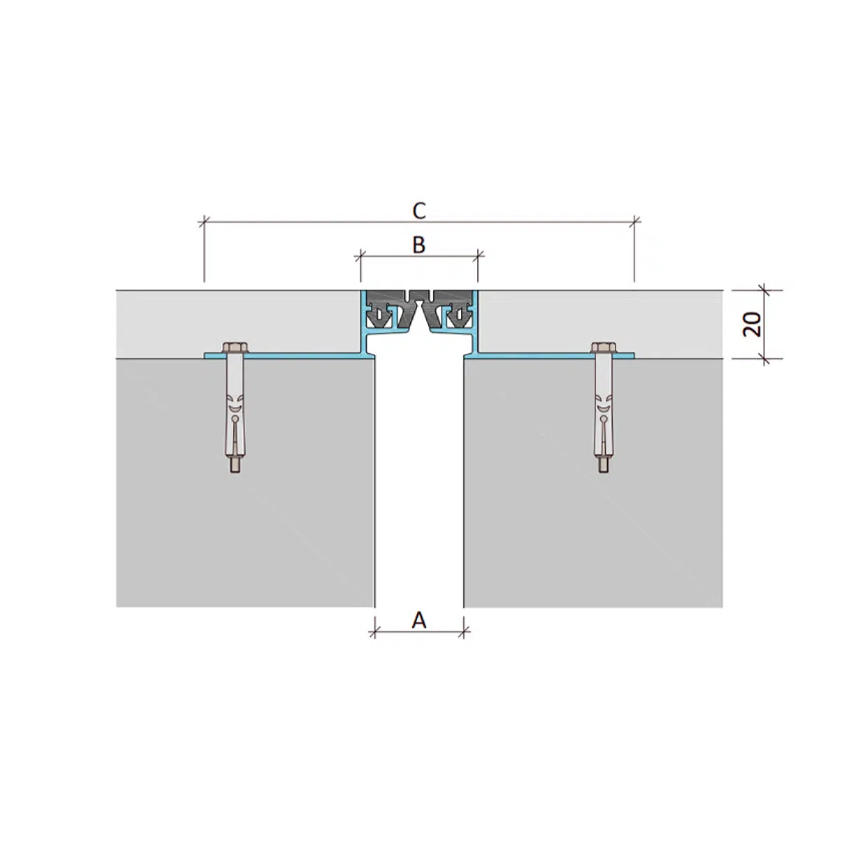 Дилатационные устройства АКВАСТОП тип ДШВ — 50-УГЛ/030 — предназначен для защиты угловых швов в горизонтальных и вертикальных конструкциях (стыки стен, пола, потолка, переходы между помещениями) в зонах повышенной пешеходной нагрузки: торговые центры, офисные помещения. Ширина шва — 30 мм. Подходит для швов в конструкциях пола толщиной — 50 мм. Монтаж направляющих осуществляется закладным способом. Устройство состоит из алюминиевых направляющих с перфорацией и эластичного профилированного компенсатора из термоэластопласта (ТЭП) посередине.